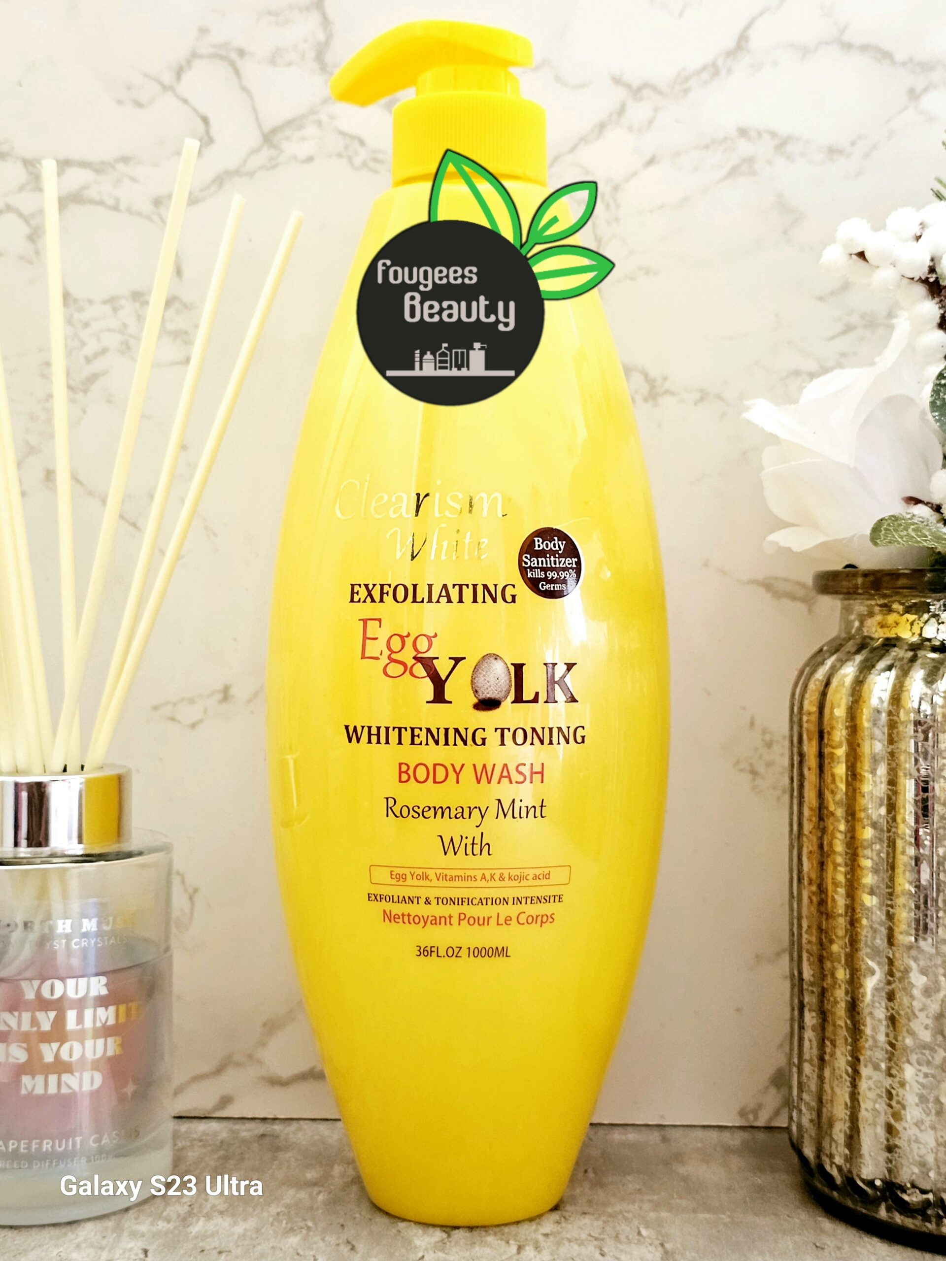 Clearism White Exfoliating Egg Yolk Whitening Toning Body Wash Rosemary Mint with Egg Yolk, Vitamins, A, K & Kojic acid.