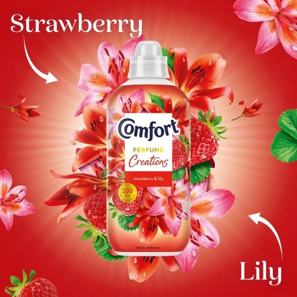 Bring a burst of fruity freshness to your laundry with Comfort Strawberry fabric conditioner. This rich formula softens your clothes while leaving them with a sweet, uplifting strawberry scent. Perfect for 30 washes, it ensures your fabrics stay irresistibly soft and fragrant.
