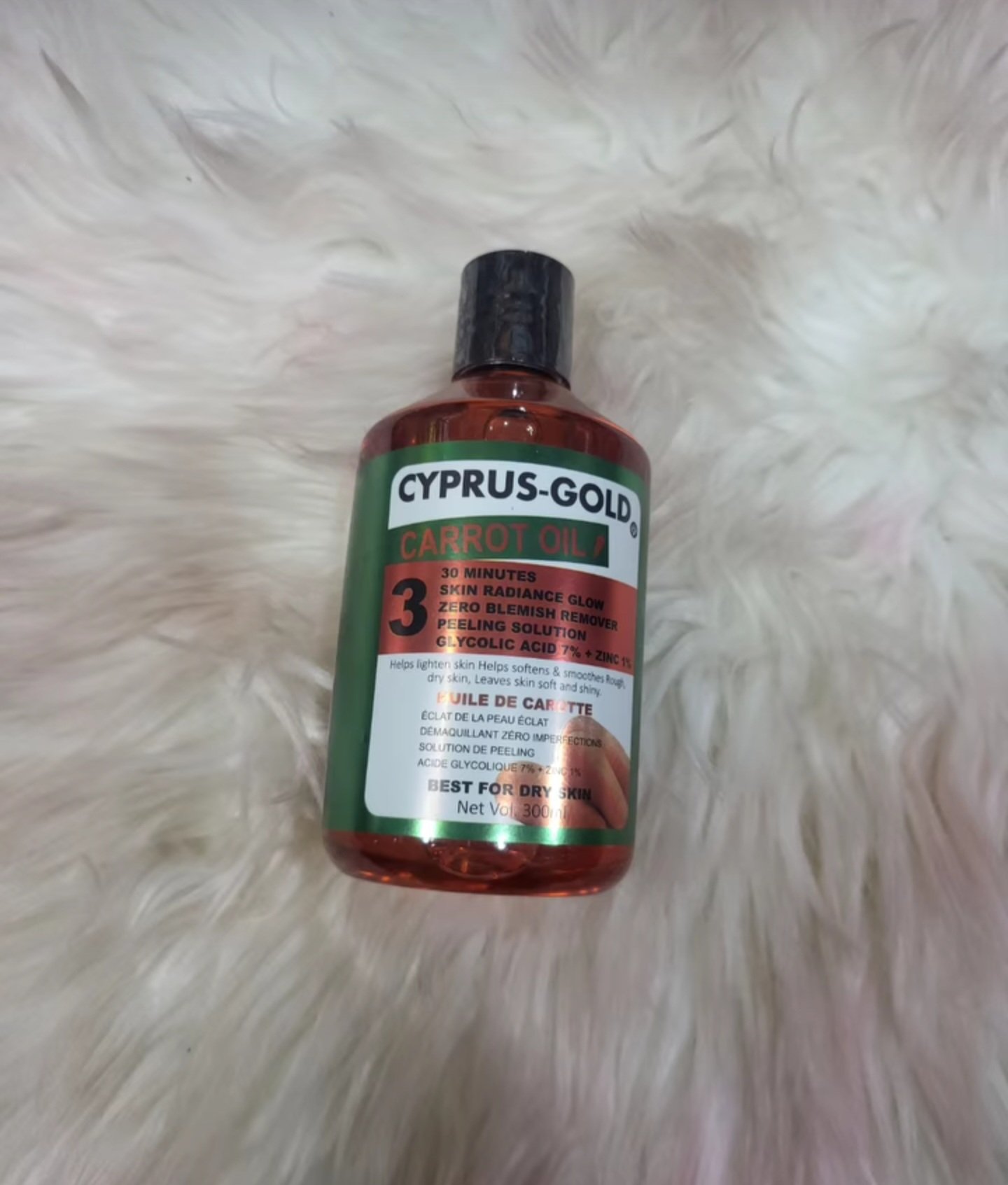 Carrot oil skin radiance glow, zero blemish remover, peeling solution, Glycolic Acid 7% + zinc 1%.