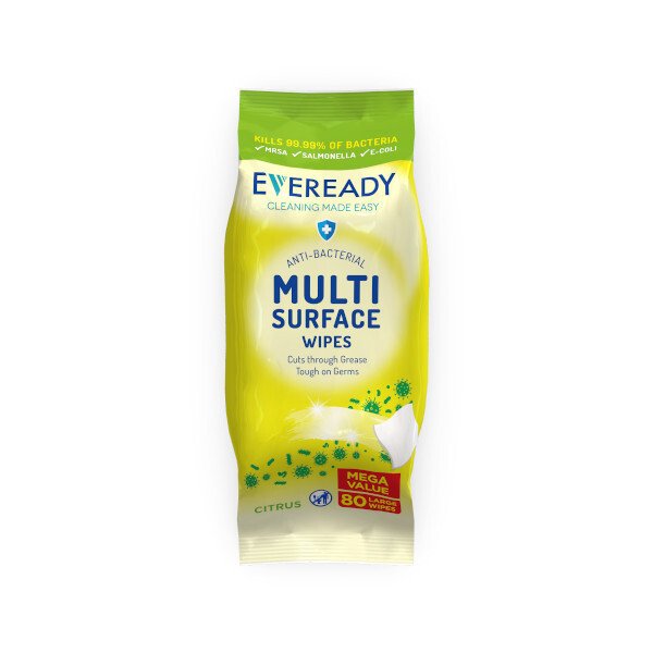 Eveready anti-bacterial multi-surface wipes are formulated to kill 99.99% of bacteria. Ideal for many types of surfaces. These wipes are convenient and easy to use, and are great value.