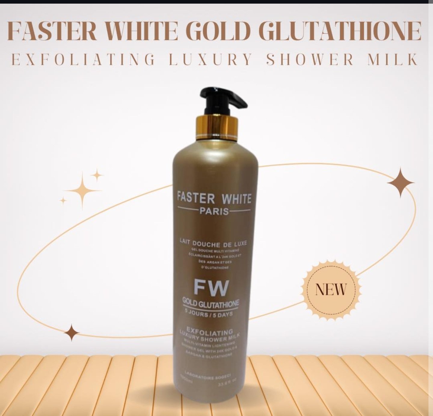 Introducing the FASTER WHITE GOLD GLUTATHIONE Luxury Exfoliating Shower Milk!