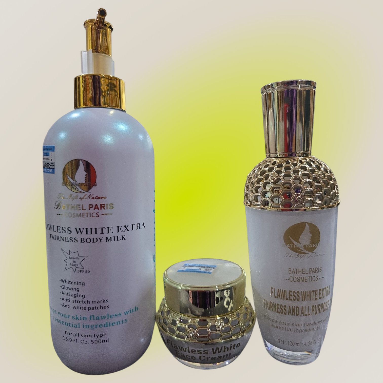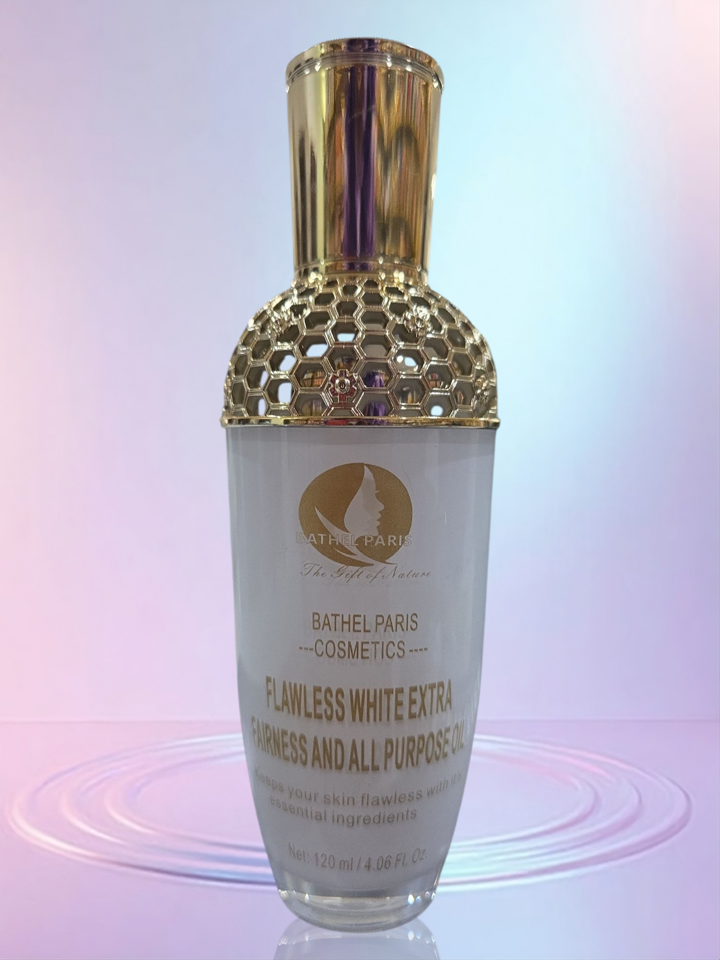 Flawless White Extra Fairness & All Purpose Oil is a multi-benefit brightening oil that hydrates, evens skin tone, and enhances radiance. Lightweight and fast-absorbing, it’s perfect for face, body, and targeted problem areas.