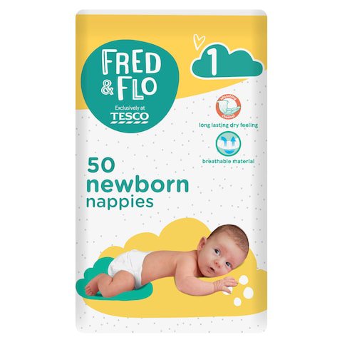 Fred and Flo Newborn Nappy Size 1 50 Pack