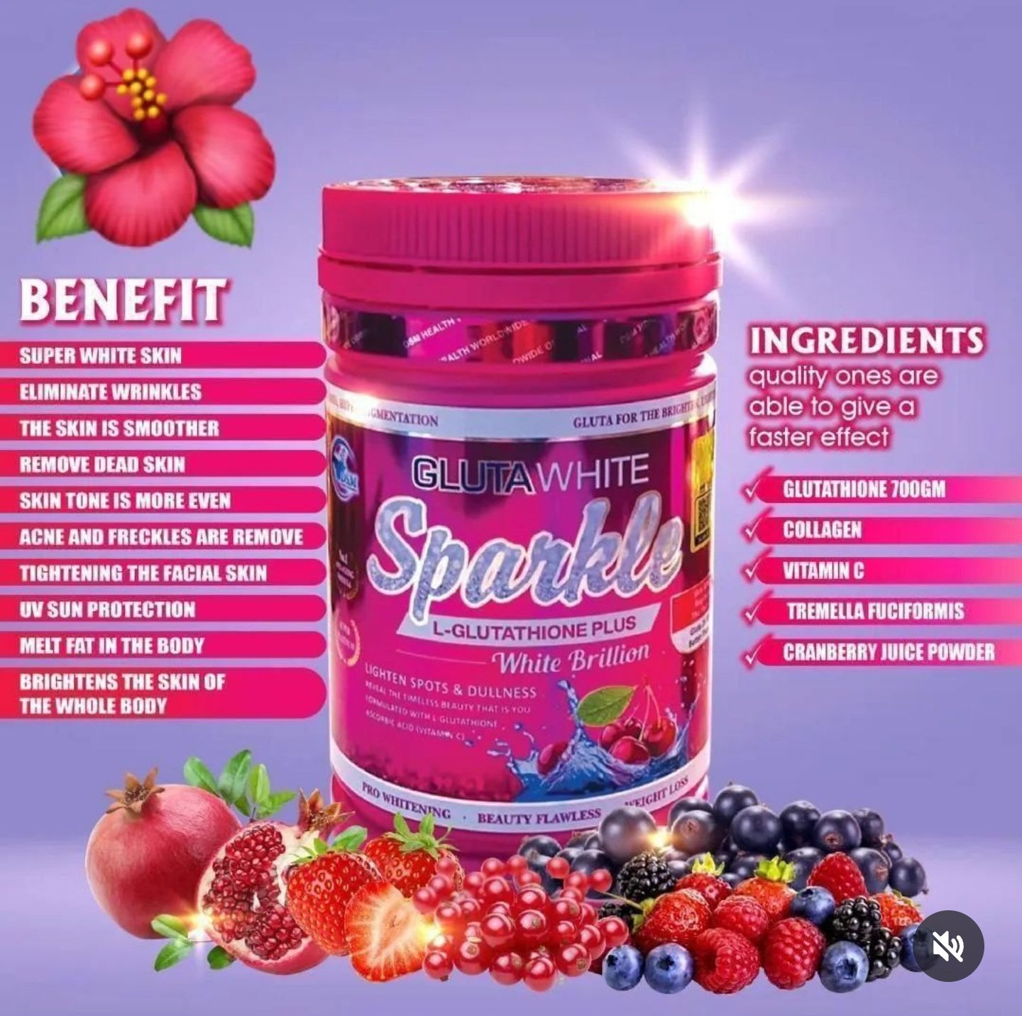 Gluta White Sparkle L-Glutathione Plus White Brillion Best 2x Skin Whitening Supplement 750g