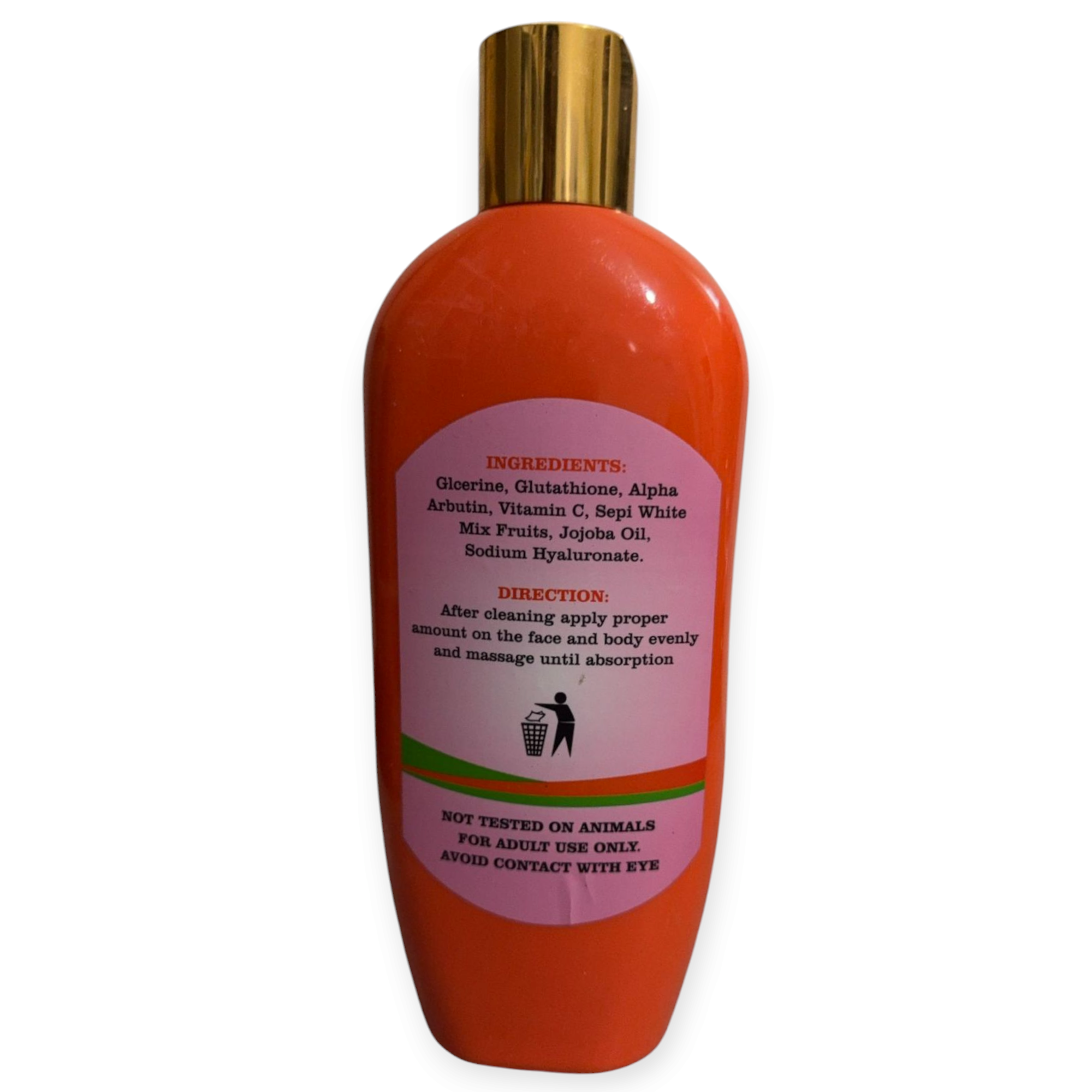 Recommended to use generously to blend and even skin tone. It moisturises and soften while improving skin texture for a radiant complexion. It aids quicker, even absorption so skin can be lightened in less time. Skin looks smooth, clear and bright. You will see a gradual lightening in weeks. Continued use furthers steady lightening.