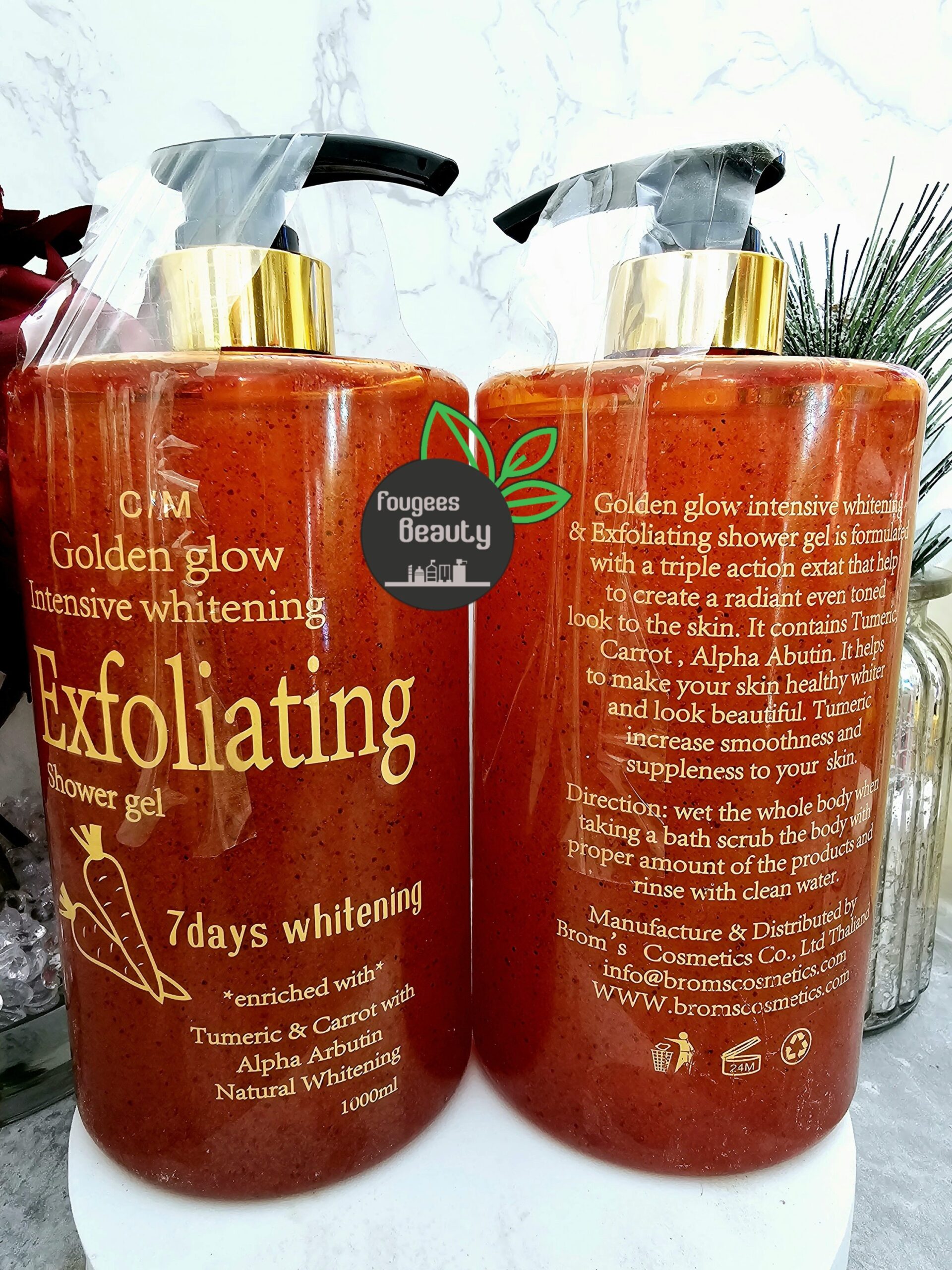 Golden glow intensive whitening & exfoliating shower gel is formulated with a triple action extract that help to create a radiant even toned look to the skin. It contains Turmeric, Carrot, Alpha Arbutin. It helps to make your skin healthy whiter and look beautiful. Turmeric increase smoothness and suppleness to your skin.