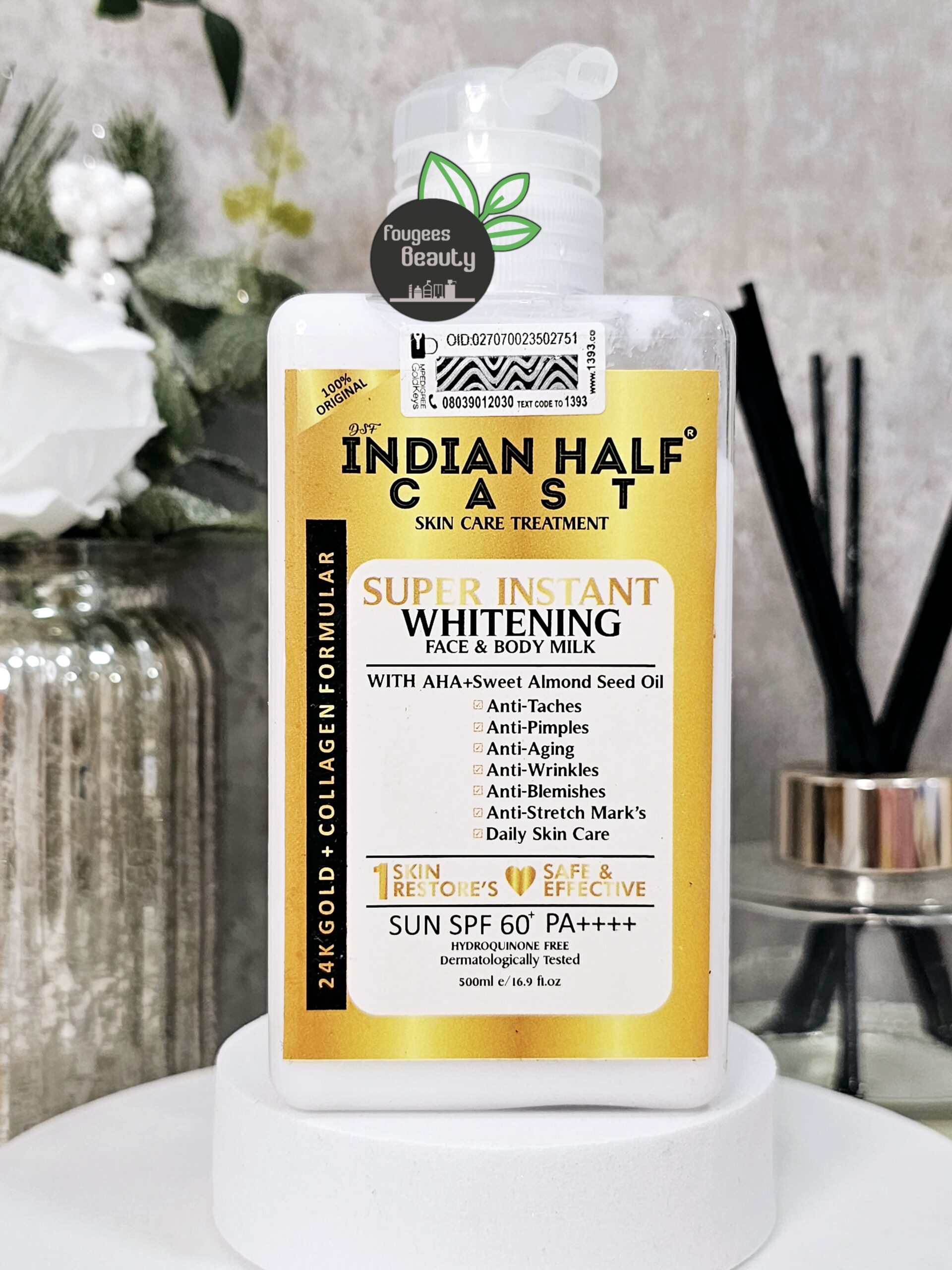 Indian half cast is a super instant whitening face & body milk that lightens firms the skin, very active specifically formulated to improved the skins deeply, gives complete defense from the sun as it visibly whitens in just 7 days. Contains SPF50 shield the skin against harmful UVA & UVB rays to prevent darkening.
