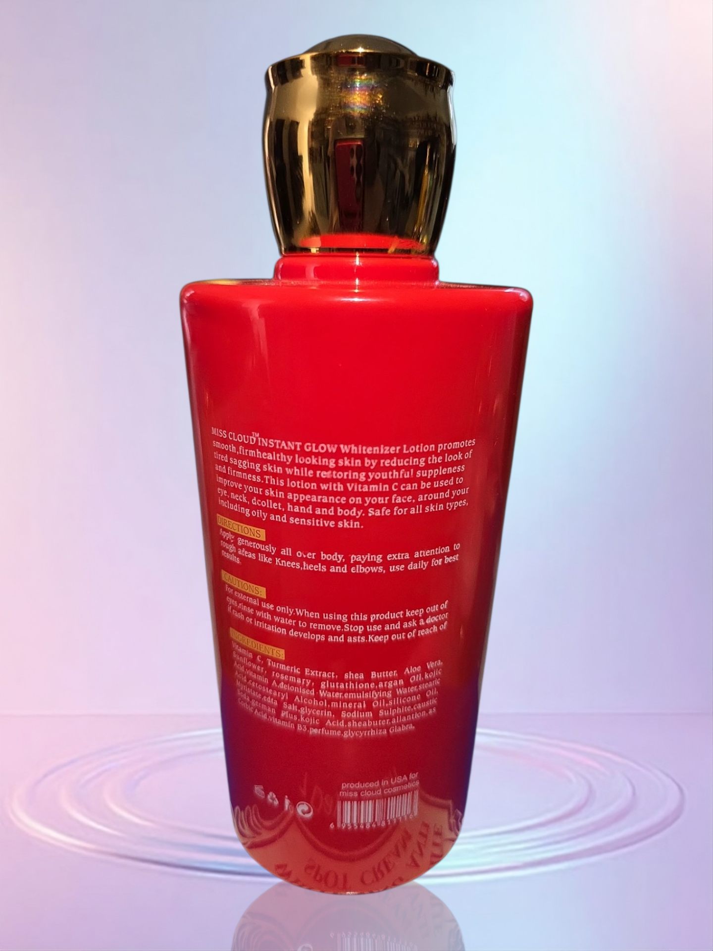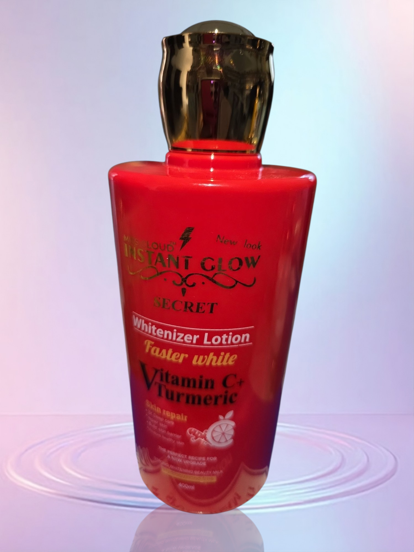 Instant Glow Secret Whitenizer Lotion is a high-performance brightening lotion designed to give you faster whitening results while deeply nourishing and repairing the skin. Formulated with a potent blend of Vitamin C and turmeric extract, this lotion helps to fade dark spots, even skin tone, and restore your skin’s natural radiance.