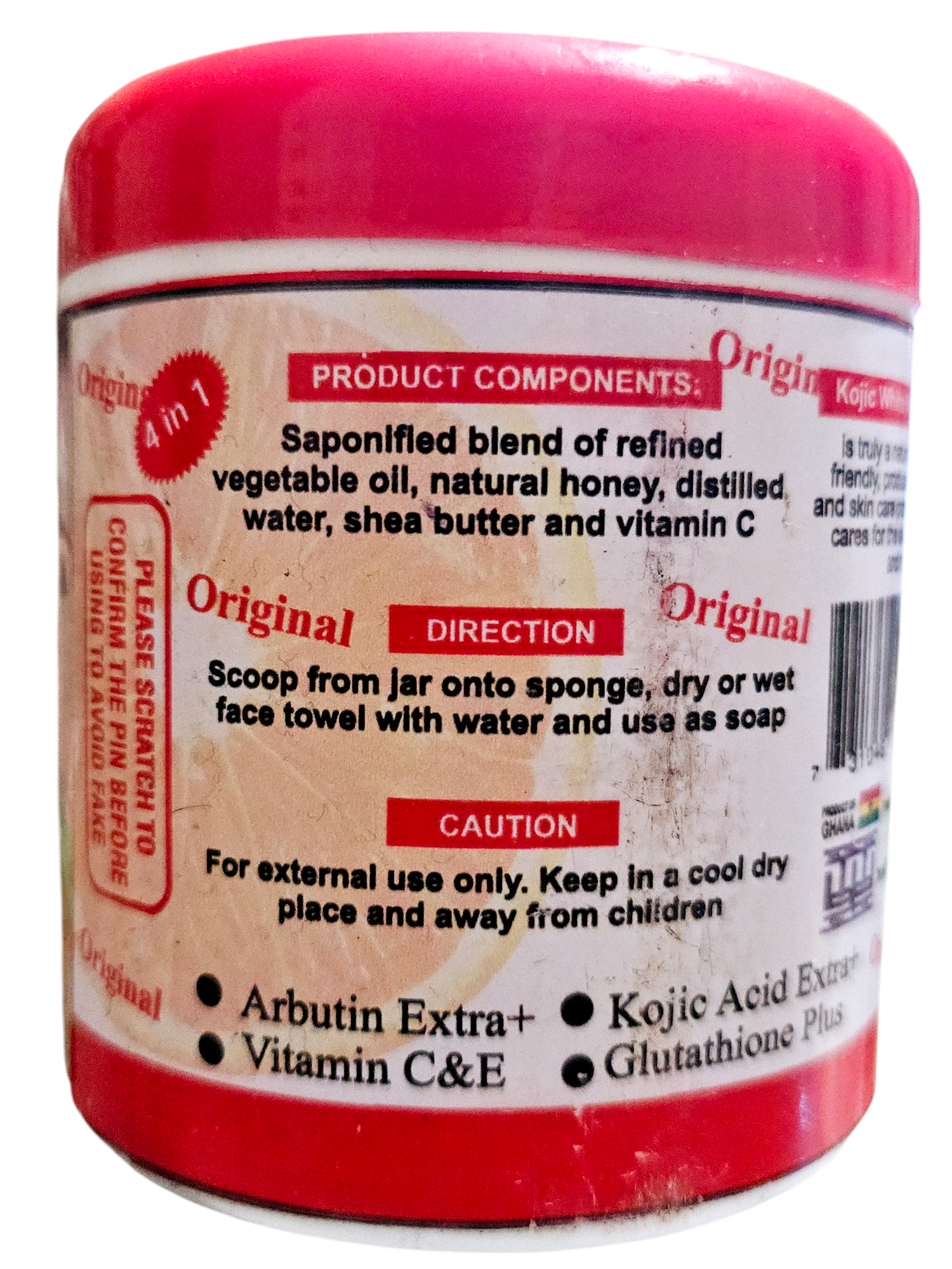 With 4in1 effective actives such as Arbutin extra, Kojic acid extract, Vitamin C&E, Glutathione plus.