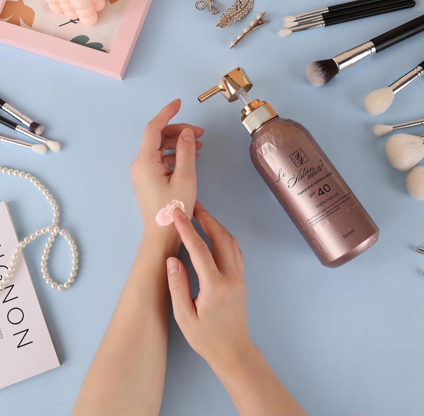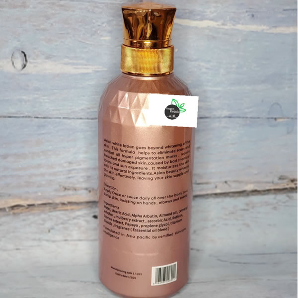 Whitening and repairing lotion, effectively treats stretchmarks, sunburn, pimples, scars, knuckles and green veins.