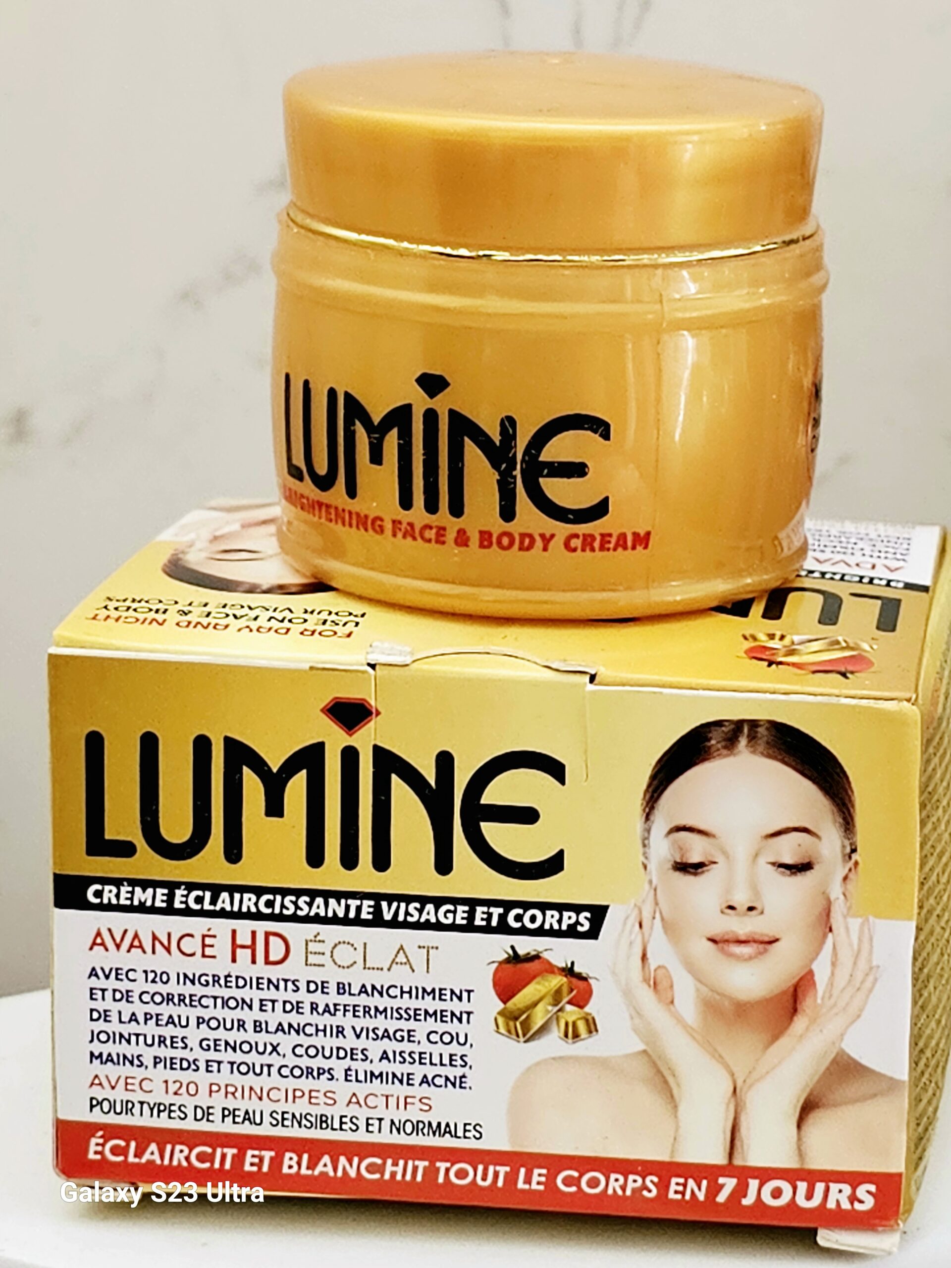 Lumine extreme strong brightening face and body cream intensively whitens your skin and makes it bright, glowing and beautiful in just 7 days. It penetrates deep into skin pores to regenerate dead skin cells, giving you a fresh skin that’s whiter and brighter. It completely removes acne, pimples, blemishes, dark spots and dark patches on the face, magically whitens dark knuckles, underarms, knees, elbows, hands, feet and whole body, makes them smooth, glowing and spotless within just 7 days.