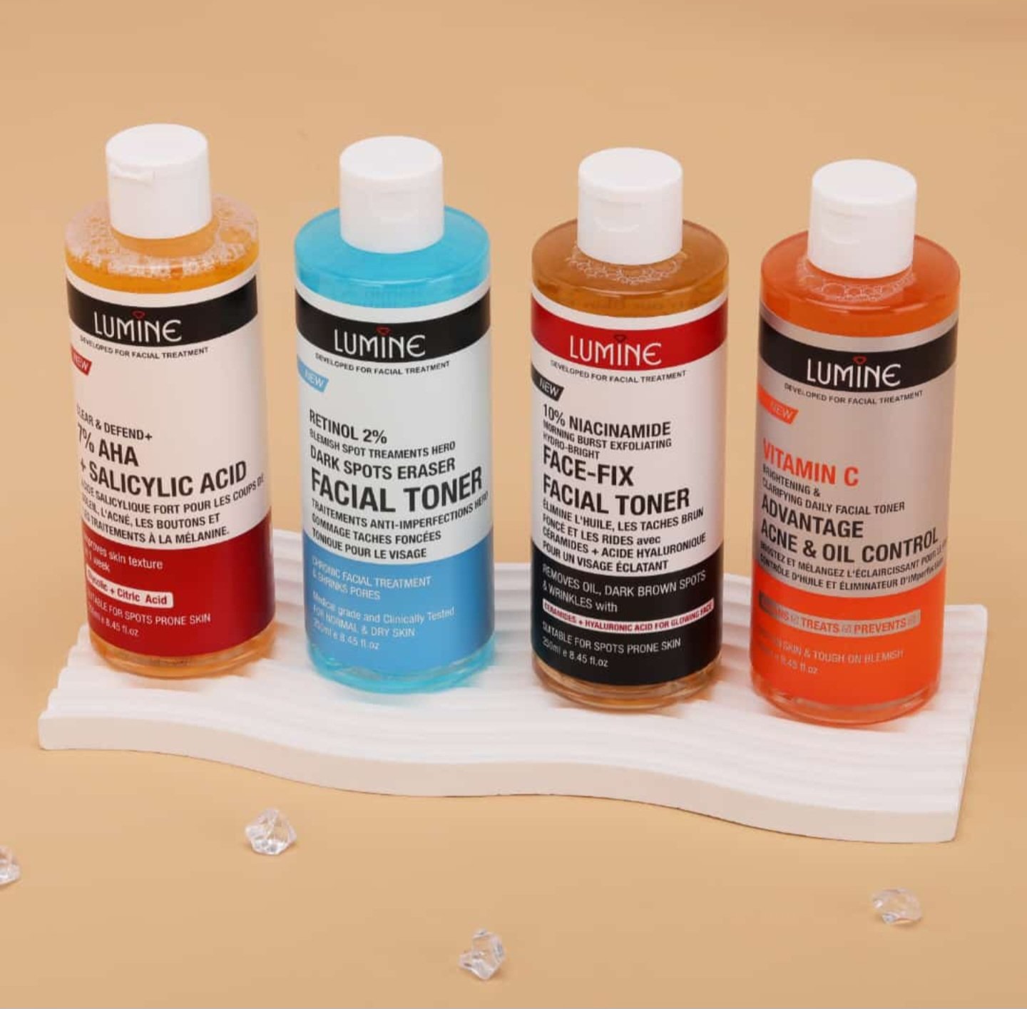 Lumine facial toner is developed for facial treatment. Vitamin C brightening and clarifying daily facial toner, advantage acne and oil control toner.