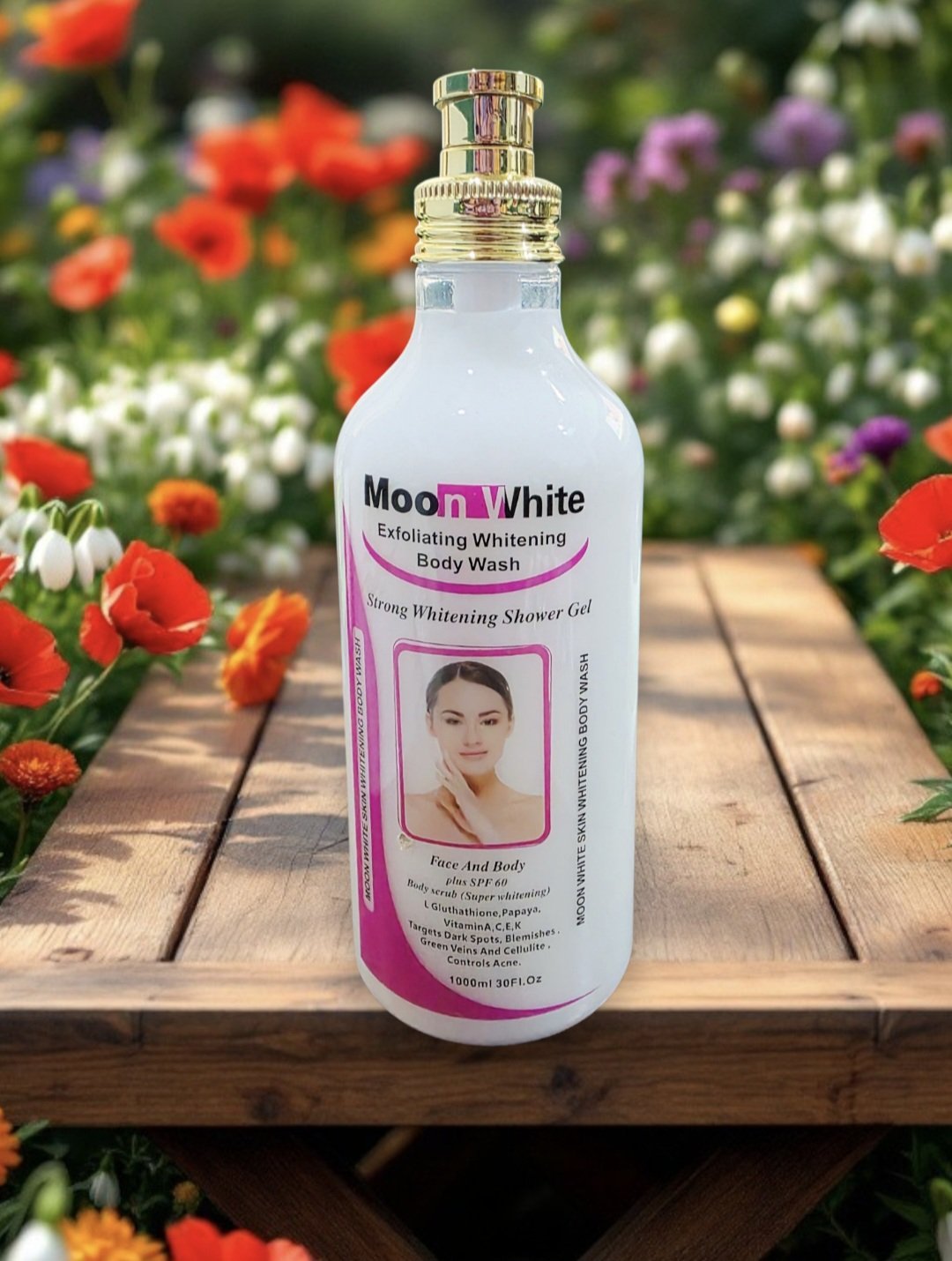 Reveal smoother, brighter skin with Moon White Exfoliating Whitening Body Wash, a potent blend of vitamins and carefully crafted actives that target pigmentation, blemishes, and dull texture. Enriched with a powerful vitamin complex—Vitamins A, B, C, and K—this formula gently fights acne, refines rough patches, and enhances natural glow in as little as 14 days.