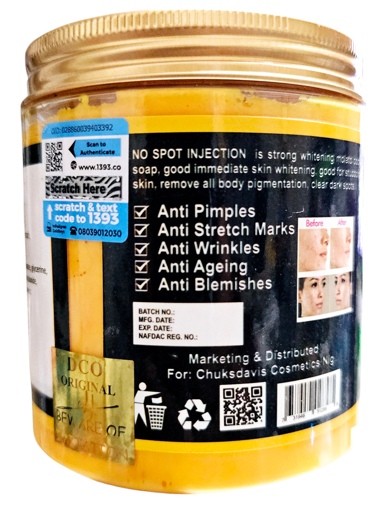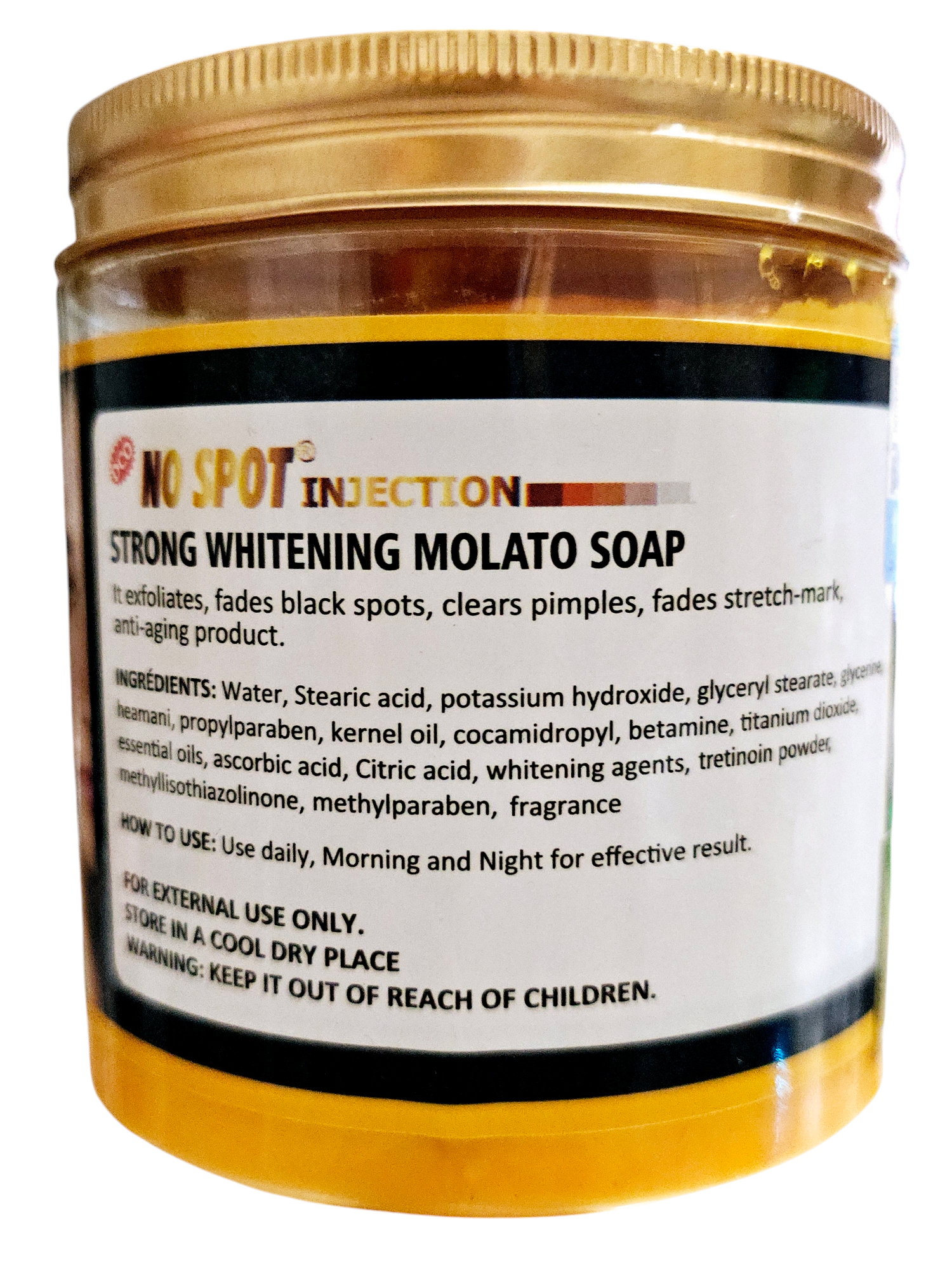 No Spot Injection is a strong whitening molato body soap, good immediate skin whitening, good for stubborn skin, removes all body pigmentation, clear dark spots.