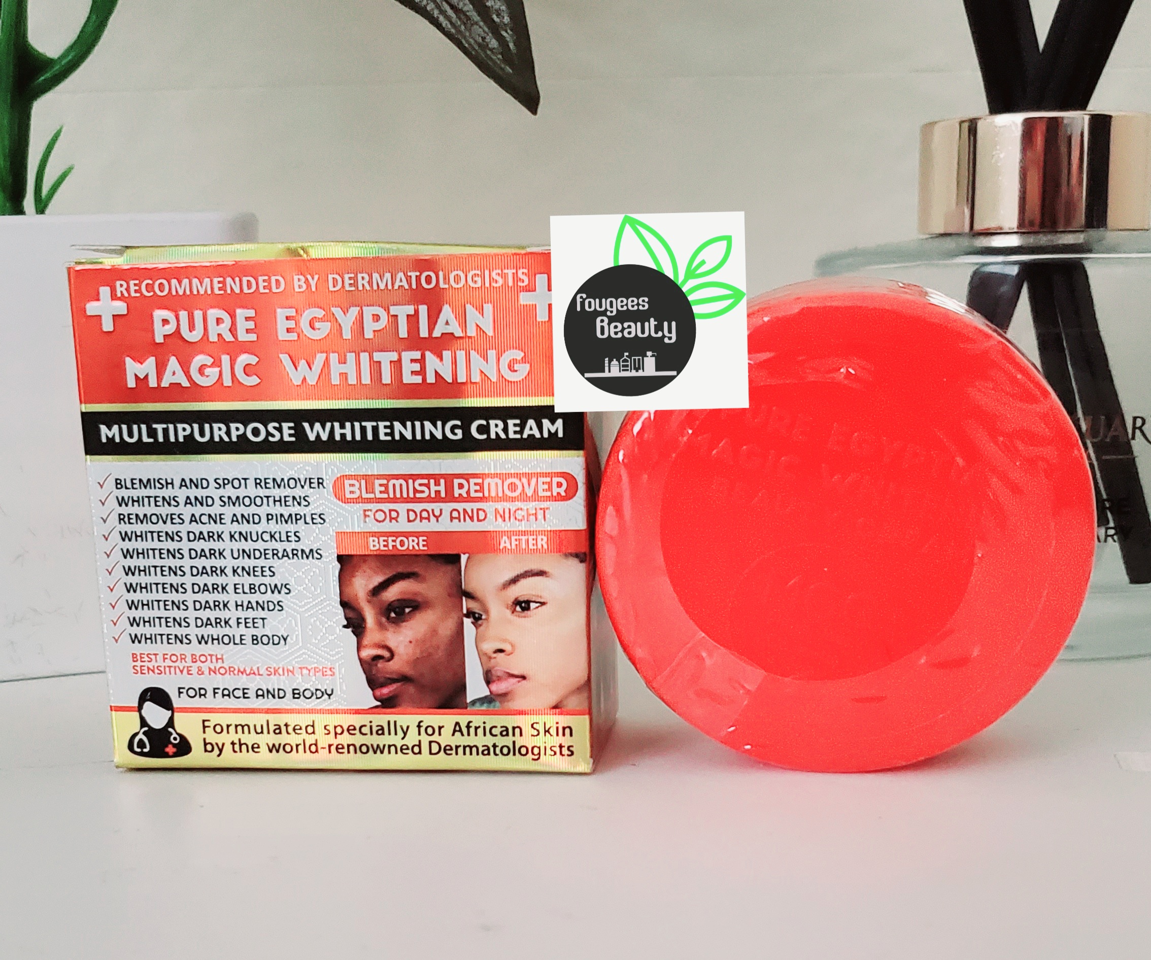 Pure Egyptian Magic Whitening Cream intensively whitens your skin and makes it bright, glowing and beautiful in just 3 days. It penetrates deep into skin pores to regenerate dead skin cells, giving you a fresh skin that’s whiter and brighter. It completely removes acne, pimples, blemishes, dark spots and dark patches on your face. It magically whitens dark knuckles, underarms, knees, elbows, hands, feet and whole body, and makes them smooth, glowing and spotless within 3 days.