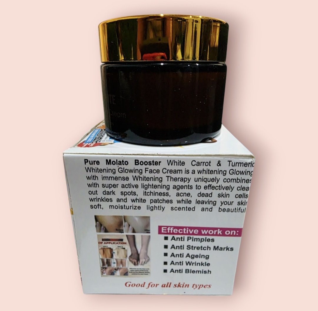 Achieve radiant skin with Pure Molato Booster White Carrot and Turmeric Face Cream, targeting dark spots and wrinkles effectively. Discover the secret to glowing skin.
