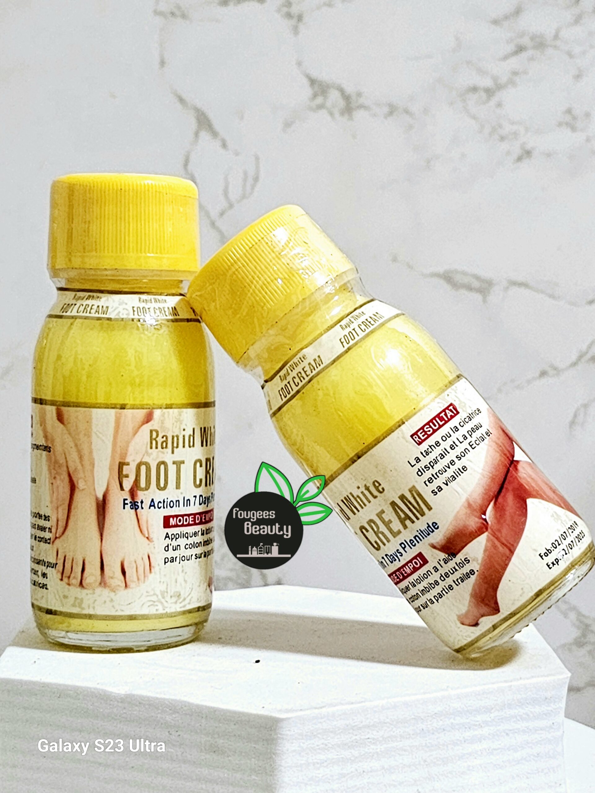 Rapid White Foot Cream is a fast action 7 days plenitude. I can be applied directly on the feet, hands, dark knees, dark elbow and dark knuckles. This works for very tough areas or areas that are difficult to lighten. It is advisable to wear socks when using this product in other to get a more faster results. It can be applied directly and can also be added to other creams for maintenance.