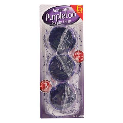 Keep your toilet clean and fresh with these Sanicare Purpleloo Toilet Blocks. In a convenient pack of six, each block lasts up to three weeks, delivering a purple cleansing foam with each flush.