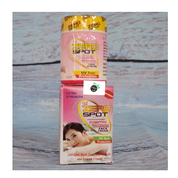 Zero spot clarifying whitening face cream contains Aloe Vera, Aha, Honey and Tomatoes extract which helps to clear the skin of free radicals and rough layers, it helps to nourish the skin to be smooth and clear. Very effective for clearing spots and blemishes. Gives fast results.