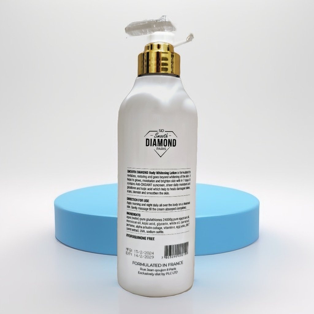 SD Smooth Diamond Paris Body Whitening Lotion is formulated to revitalise, restoring and goes beyond whitening of the skin. It helps to glow, moisturise and brighten the skin with in 7 days. It contains anti-oxidant sunscreen, sheer daily moisture and glutathione and Kojic acid which help to heal damaged skin, scars, blemish and smoothen the skin.