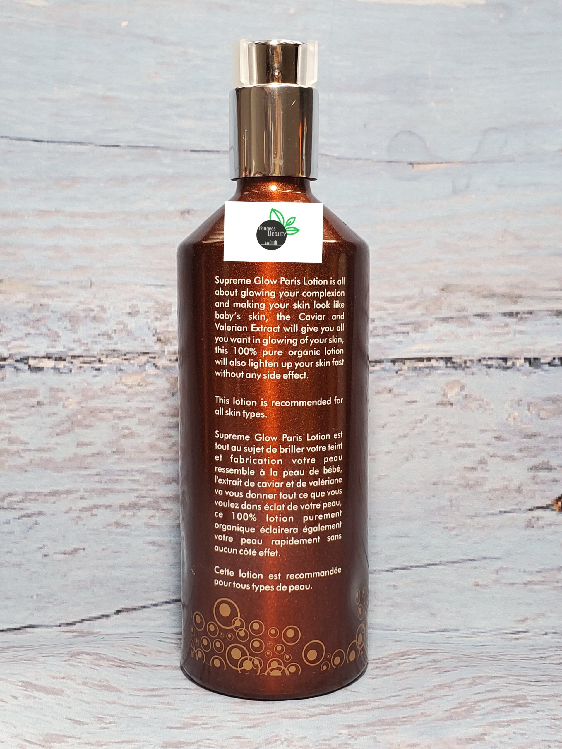 Supreme Glow Paris Lotion is all about glowing your complexion and making your skin look like baby’s skin, the caviar and Valerian Extract will give you all you want in glowing of your skin, this 100% pure organic lotion will also lighten up your skin fast without any side effect.