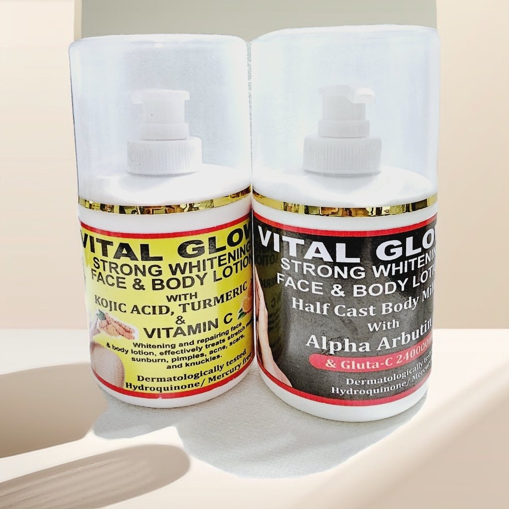 Vital Glow strong whitening face and body lotion half cast body milk with Alpha Arbutin; Gluta-C 240000mg.