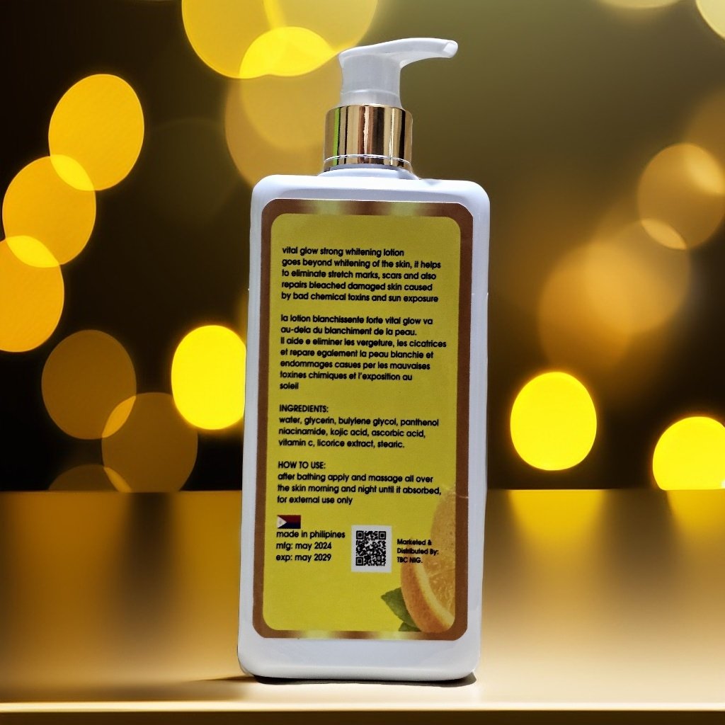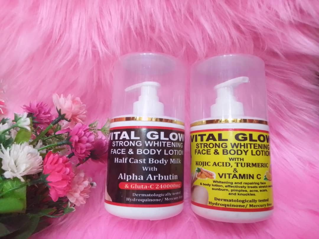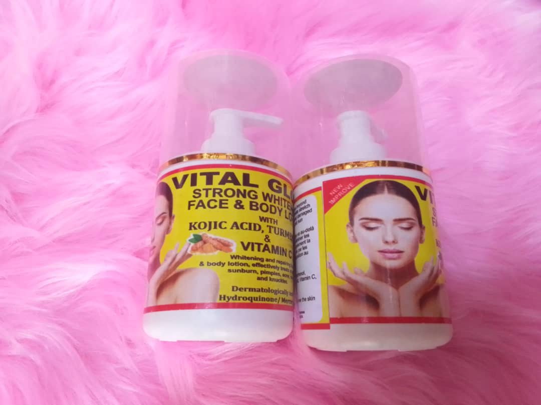 Vital Glow strong whitening lotion goes beyond whitening of the skin. It helps to eliminate stretch marks, scars and also repairs bleached damaged skin caused by bad chemical toxins and sun exposure.